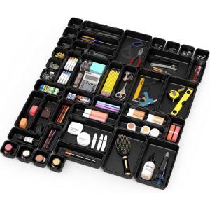 Simple Houseware Interlocking Desk Drawer Bins Organizer, 42 Packs, Black(Pack of 42)
