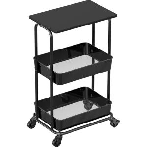 Simple Houseware 3-Tier Heavy Duty Metal Utility Rolling Cart, White(Black)