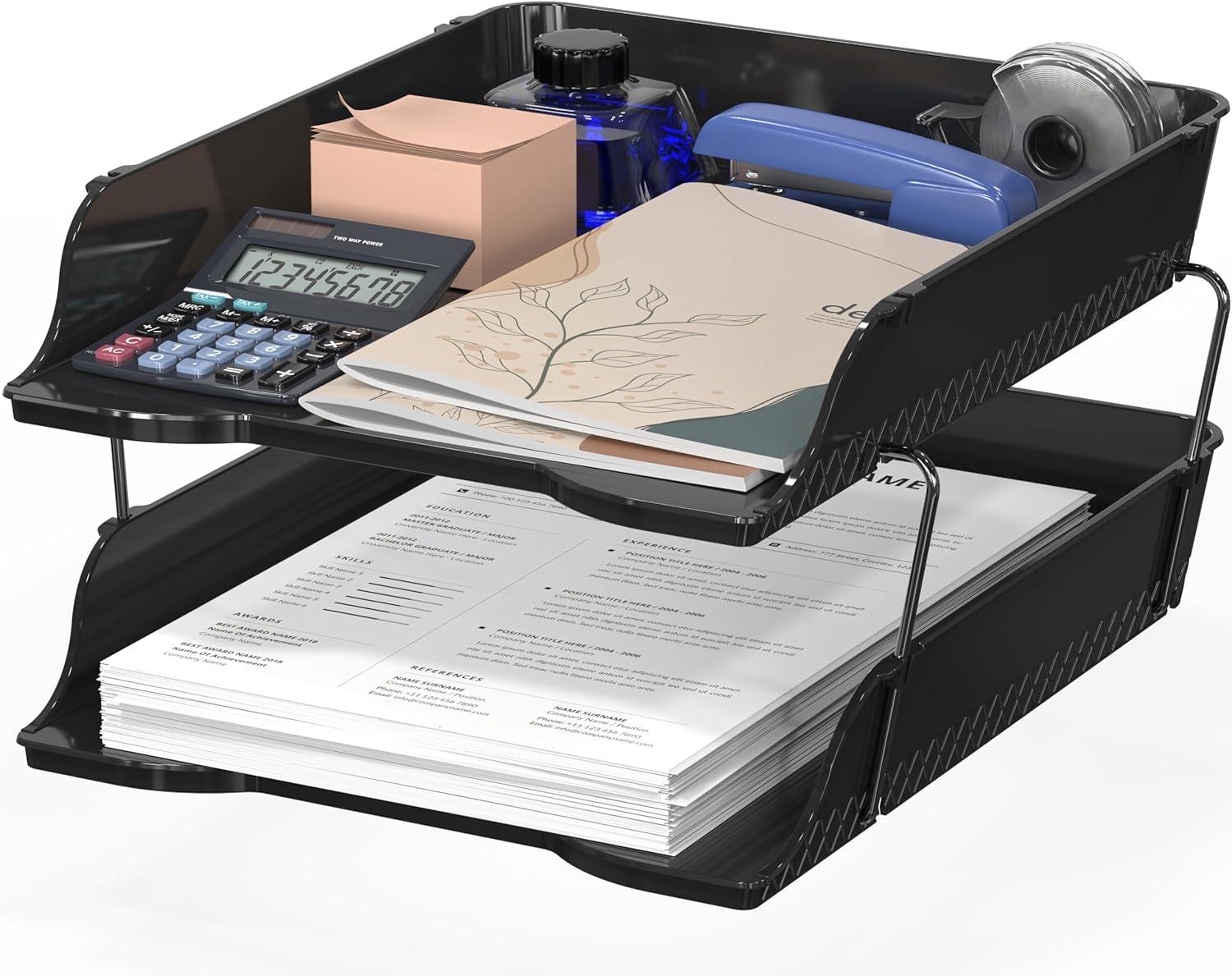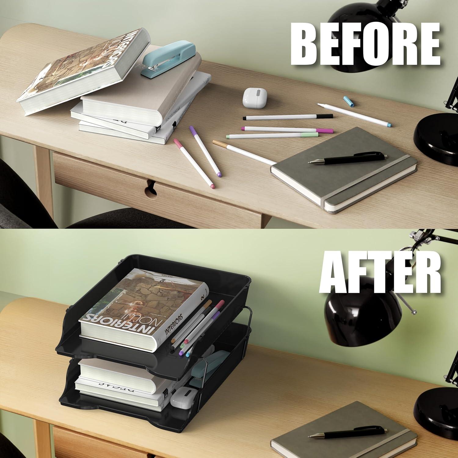 2-Tier Stackable Design : Features two stackable trays that maximize vertical space, allowing efficient organization of letters, documents, and files