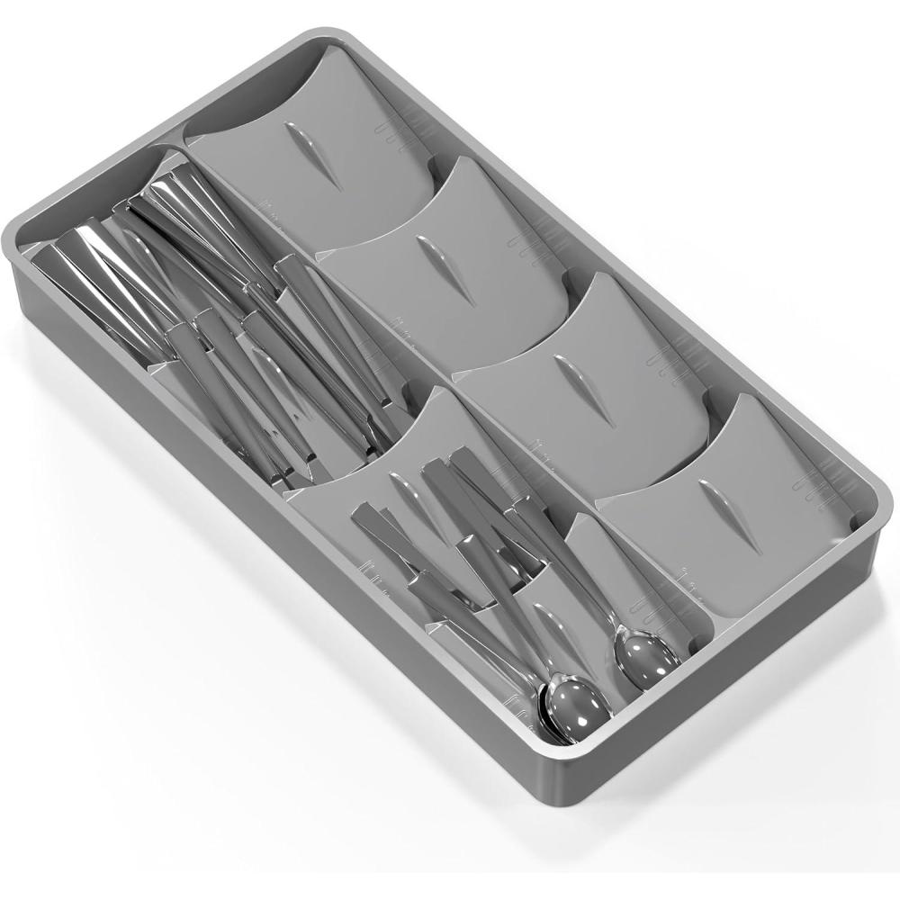 SIMPLE HOUSEWARE Adjustable Silverware Utensil Drawer Organizer, Gray(Adjustable – Angeld Trays)